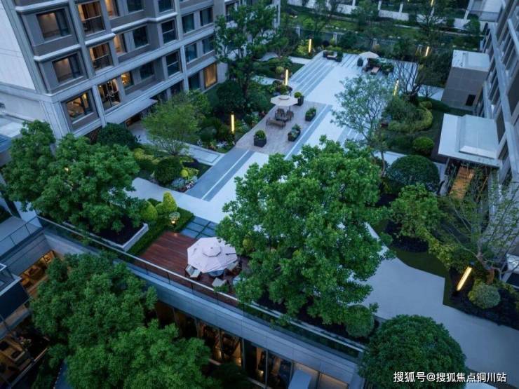 而人行线路则由星级酒店式的入户大堂进入,接着便是6S会所环绕的下沉式水景庭院,约7米高磅礴大气的水景墙配合乌桕林和原石、浮桥交错的地面水景,若是傍晚归家,还能欣赏倒映在水中的点点星光,可谓满满的奢雅意境和尊贵仪式感!