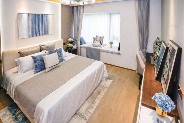 打造的套房式主卧,则满载诚意和用心,除了功能,更多的是人性化的场景考量。独立卫浴设计,让家庭成员在忙碌的高峰时段也可从容洗漱。270°观景飘窗,多赏一面的享受,让窗外景色更为生动立体,同时也为家中增添了安放乐趣的休闲一角,生活姿态万千,全权自定义。