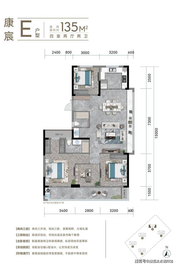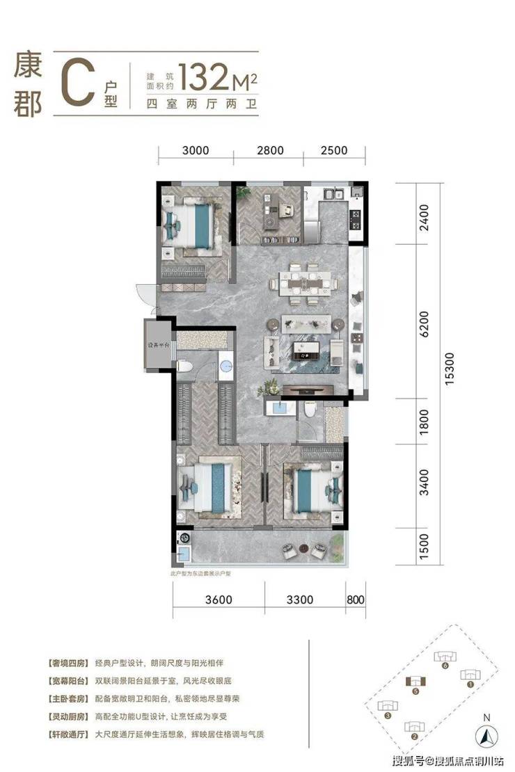 2)约132㎡户型——舒适尺度的“进阶之选”。