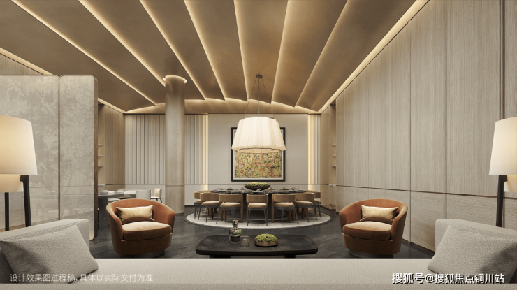 “1”即下沉式会客厅,约1500㎡,引入健身房、恒温泳池、私宴厅,对标五星级酒店体验。给豪宅业主足够的排面。