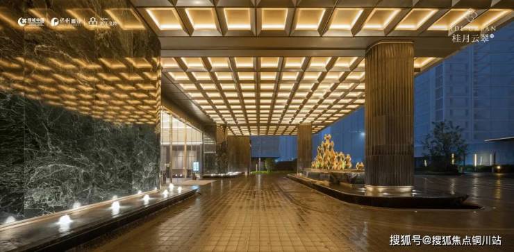 高定归家:约50m的“翡月之门”,是绿城保利交控·桂月云翠带给人的最初印象。流金穹顶与皇家金檀大理石构画的背景前,一方环岛车行落客区,令五星级酒店式归家成为现实。“明月松间照,清泉石上流。”王维独到的山水观,在下沉式庭院“空翠砯崖”上演。