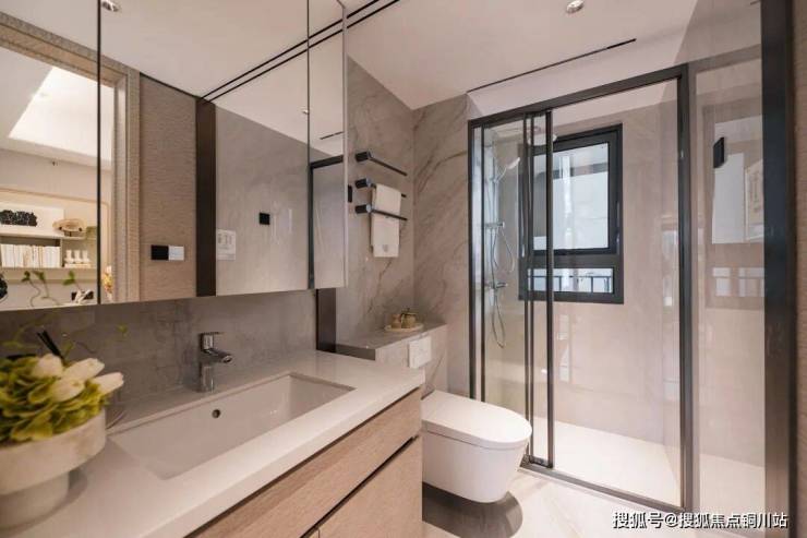 “悦己卫浴”更戳中精致生活的收纳痛点——美妆灯、镜柜集成收纳模块一站式配齐,1m² 就能满足女主人美妆需求。