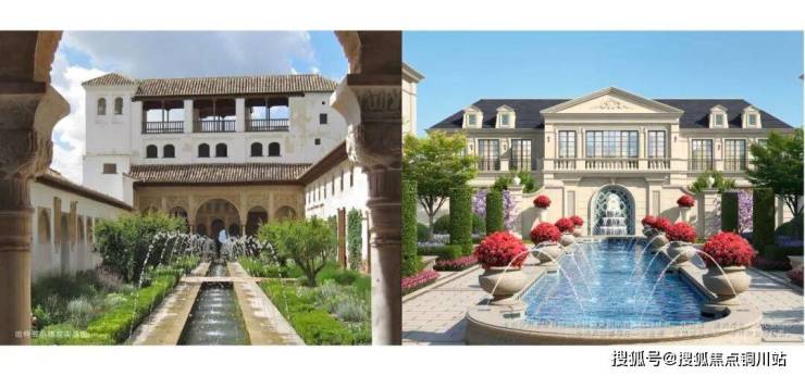 尊贵的轴线,是法式园林重要的仪序,这种轴线精神也被深深植入瑞海绿城·春和雅院法式合院的园区之中。项目以西班牙赫内拉里菲宫为蓝本,打造了一条约37米景深十字归家景观礼仪轴,以喷泉、拱廊、石柱、雕花等经典细节为点缀,赋予归家游园更多的意趣与惊喜。
