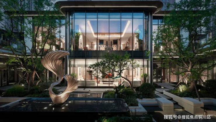 垂直滨水会所,美学生活缩影。芳疗、悦动、悦水、锦筵、奕趣、浮光素影等主题空间,悉心关照自在生活;立体光厅,美学聚场,滨水珍境,静待长江相逢。