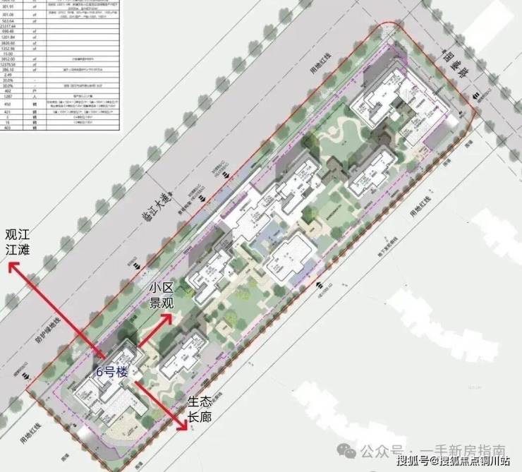 →其次,一字排开布局,所有楼栋直面长江,6号楼头排看江,位置一绝。
