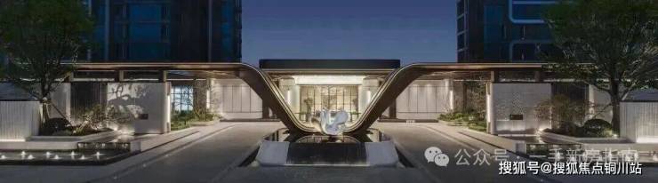 与武昌江滩对望,屹立于临江大道上的大门门庭与两侧景墙一气呵成,宽约80米的奢阔尺度,再配以V字飞翼造型,阔气且极具辨识度。