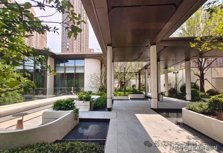 小区规划了全小区风雨连廊覆盖,风雨连廊立柱采用天然石材和金属型材结合,品质一绝。不仅是业主无风雨归家的功能区,也是串联小区重要功能节点的纽带。