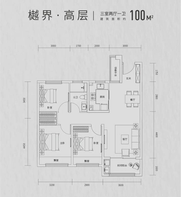 建面约110㎡3室2厅2卫