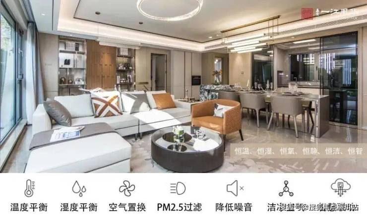 六恒精装系统通过自带监测PM2.5的除霾新风、顶层毛细管网、智能情景等科技系统,将恒温、恒湿、恒氧、恒洁、恒静、恒智的健康智能巧妙融入日常家庭生活。