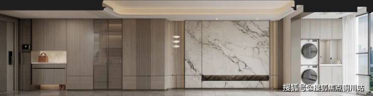 其次,S墙高效解决双开门冰箱位收纳。双开门冰箱从厨房转移到玄关位置,释放出更大的厨房操作空间。
