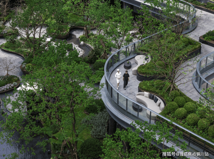 同时,项目以“垂直园林”理念设计双层连廊,打通楼栋间的互通屏障,让业主雨天也能实现无障碍社交,实现自然景观、空间与人的和谐互动。
