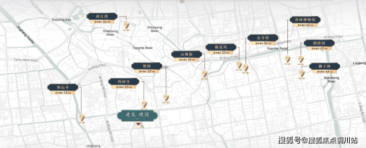 建发·璟园,盘踞城市文化遗产中轴上,周边约5公里内享西园寺、寒山寺、山塘街、留园等10处名胜古迹环伺,驾车约15分钟即可到达。