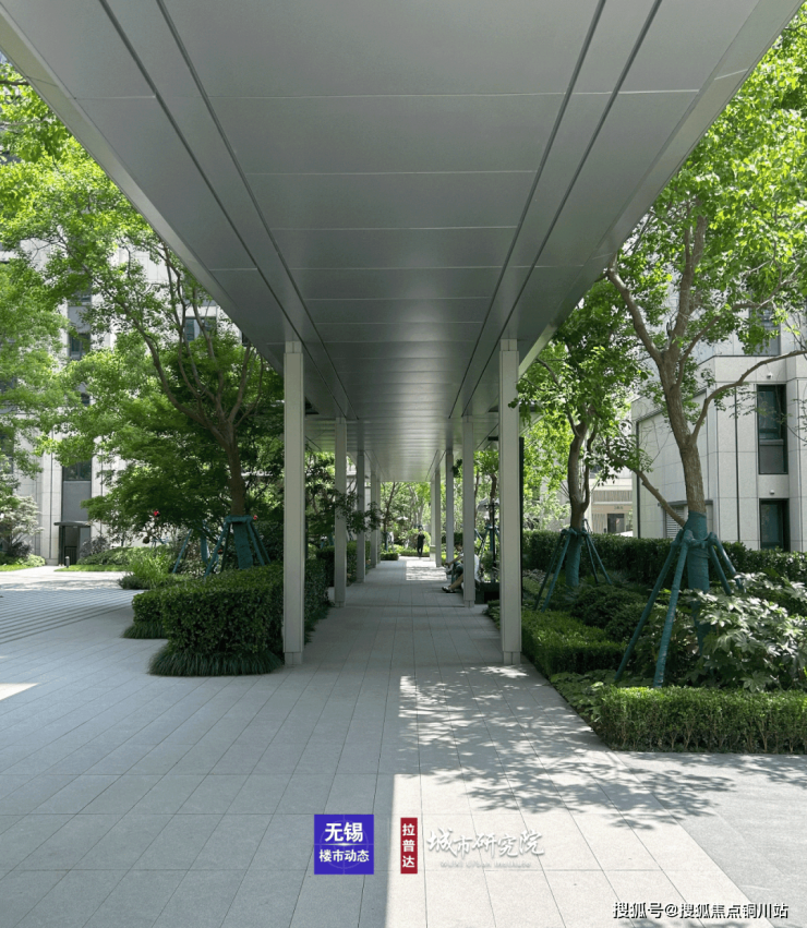 落客区设置了风雨连廊,一直延伸至社区楼栋单元门,尤其是下雨天、太阳高照的天气,都能享受无风雨归家的体验。