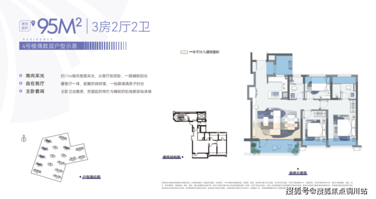 建面约95㎡户型则是软件谷区域内唯一做横厅三房的产品,不仅有约5.4米的灵活横厅,更有尺度舒适的大三房以及双卫设计,实用性拉满,北向次卧空间可作为儿童房或电竞室,轻松满足当下一家三口精英家庭的居住需求,同等功能下总价优势更显著。