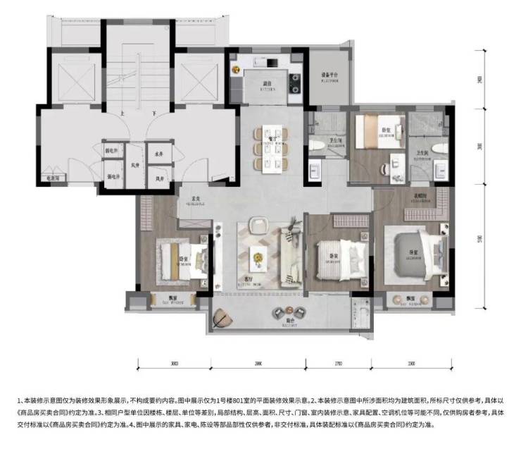 同时,南向四开间近12.9米双联阳台的设计,更能关照到每位家庭成员的阳光享受,约3米的层高设计,相较于市面上常规住宅,更可增加约13m³的立体空间,让家庭尺度和空间格局都更加从容有度。