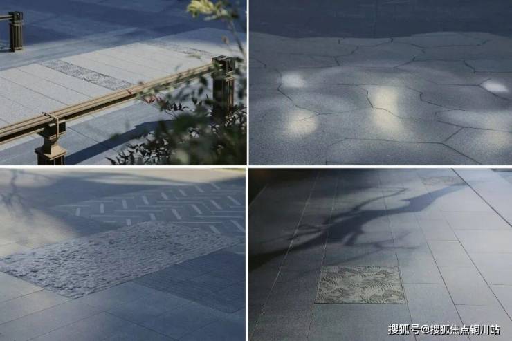 铺装选用多种石材与仿石砖、竹木,搭配雕花、线雕工艺;景墙以石材、金属格栅等组合,兼具美观与层次。植物采用多层次种植结构,精选朴树、红枫等树种,入户与公共区域差异化配置,兼顾景观效果与生态功能,打造四季有景。