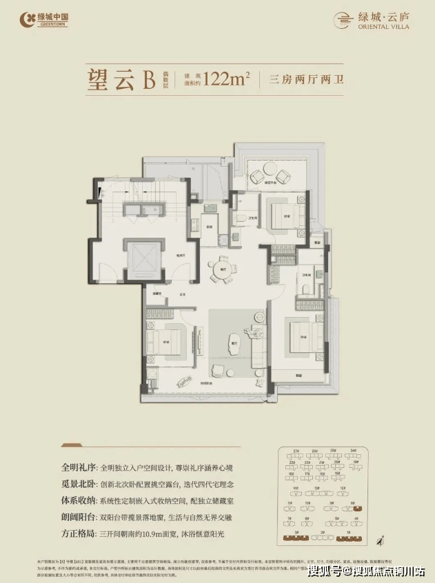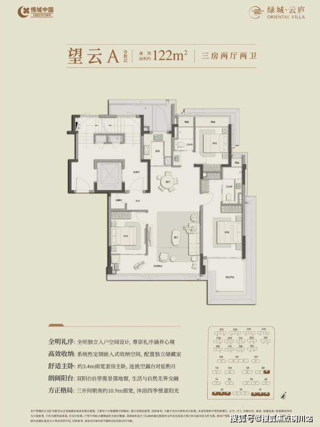 全明独立入户设计,三开间朝南约10.9米面宽,双阳台自带揽景落地窗,系统性定制嵌入式收纳空间、配独立储藏室。套房主卧面宽约3.4米,连接挑空平台,可畅享私密空间。