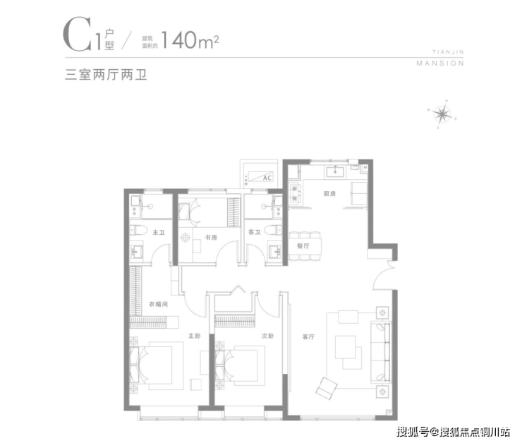 天津瑞府户型为约104-170平米,是改善的主流面积段。