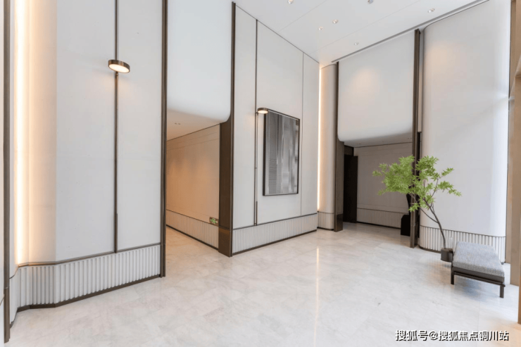 墙面的摩罗石,使用留白的处理手法,一直从大堂延伸到电梯厅。