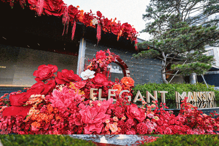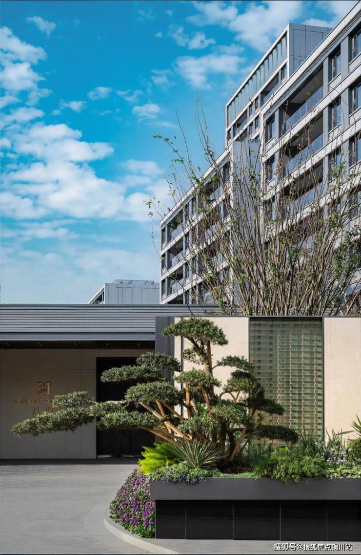 这次项目交付,一脉相承的安缦酒店式东大门,同样让人震撼。两道景墙层层过滤喧嚣,两棵罗汉松分列两侧,搭配丰富花木,构成归家动线的仪式感。