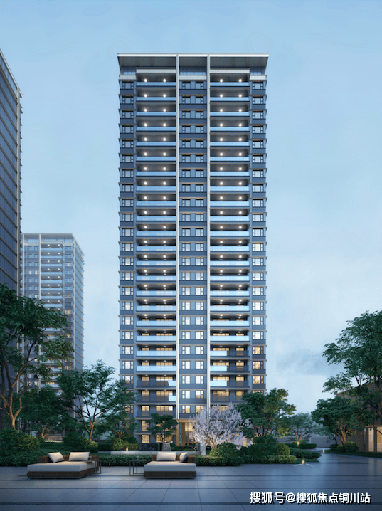 结合狮山片区现代化的城市界面,采用灰色系外立面,辅以香槟色铝板进行勾勒,同时增加金属网装饰,使住宅立面有渐进的颜色变化,达到“远近高低各不同”的视觉效果。