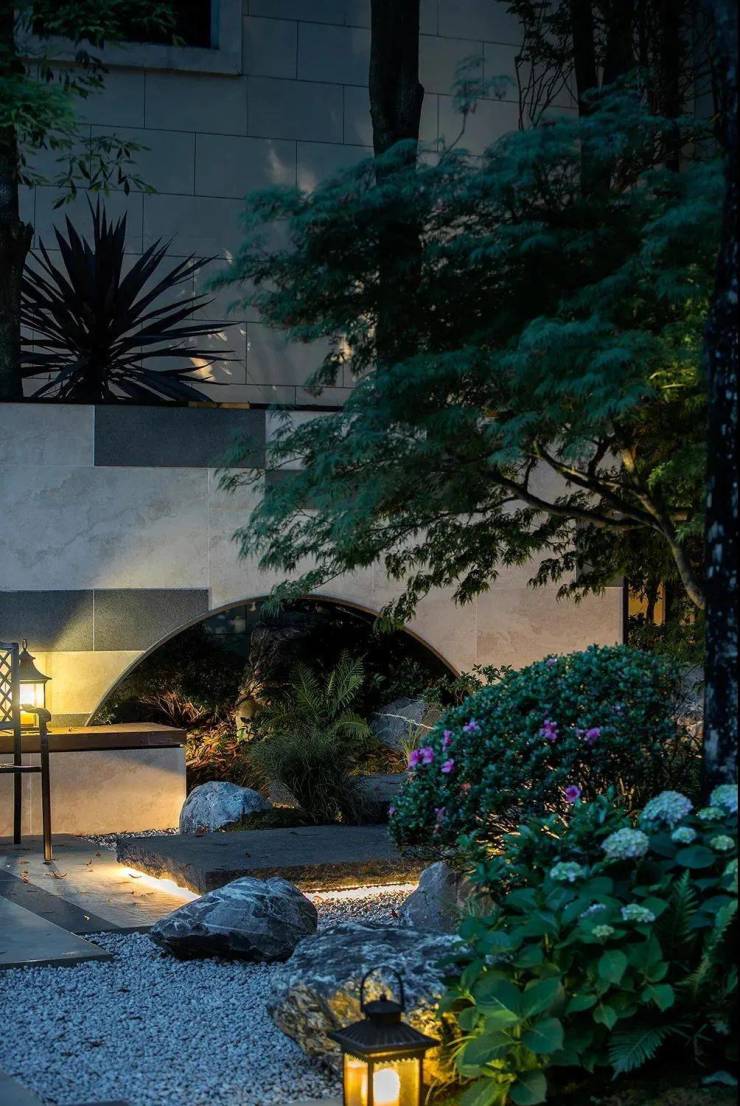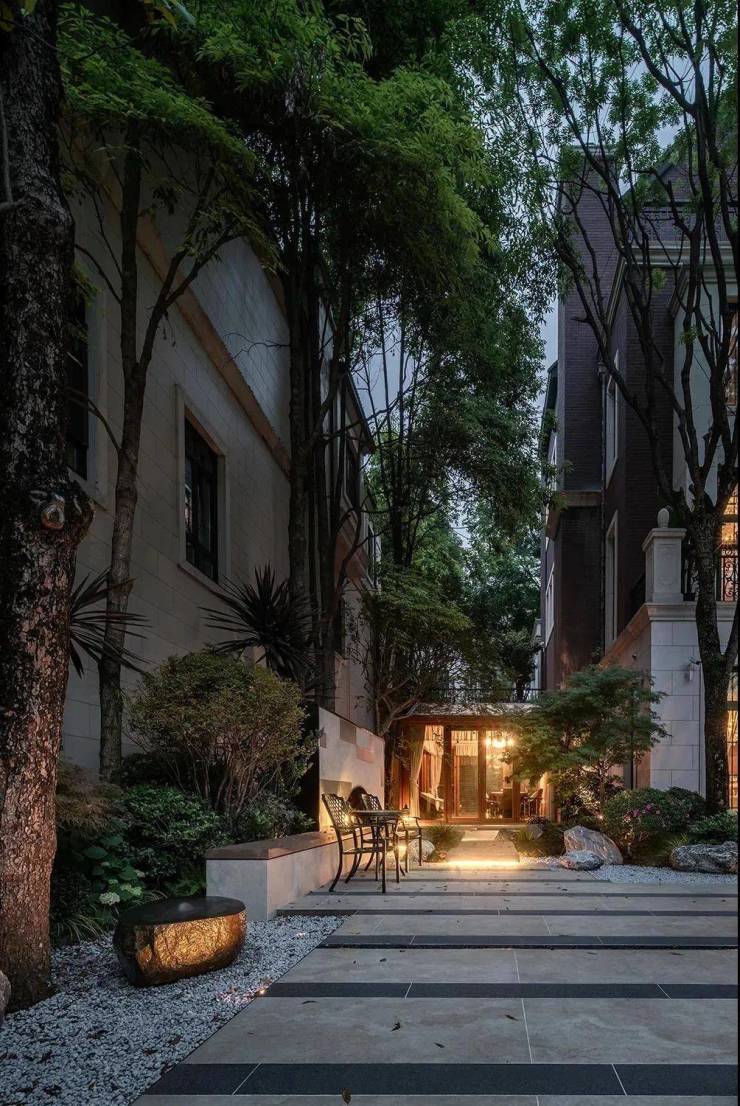 亲水而居、户户庭院,建筑与景观无缝相接。树丛掩映,绿意盎然,房屋中的暖光从玻璃中漫溢而出,室内和室外的边界趋向模糊,相互借景,融为一体。