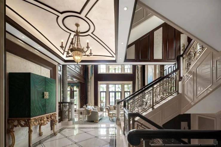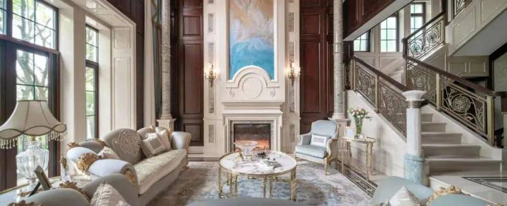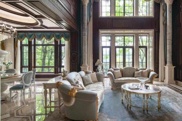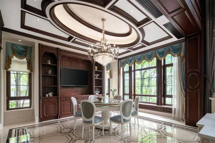 回归生活的本质,是一场古典主义的当代解构,整体空间相连却又各自独立。精美的古典纹饰是古典风格的惯用手法,皇家蓝和富贵金的色彩组合,营造出富丽堂皇的奢华氛围。