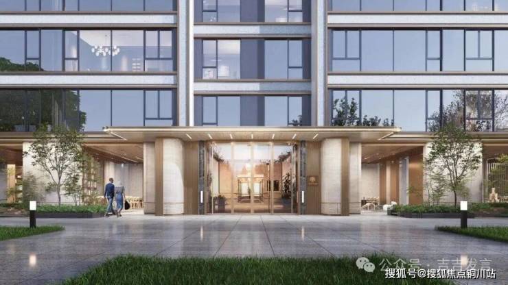 · 柏悦系现代美学立面,35%南向超大窗墙比+270°转角落地窗,超8米单元门楼与石材铝板幕墙组合,构建极具昭示性归家礼仪轴线。