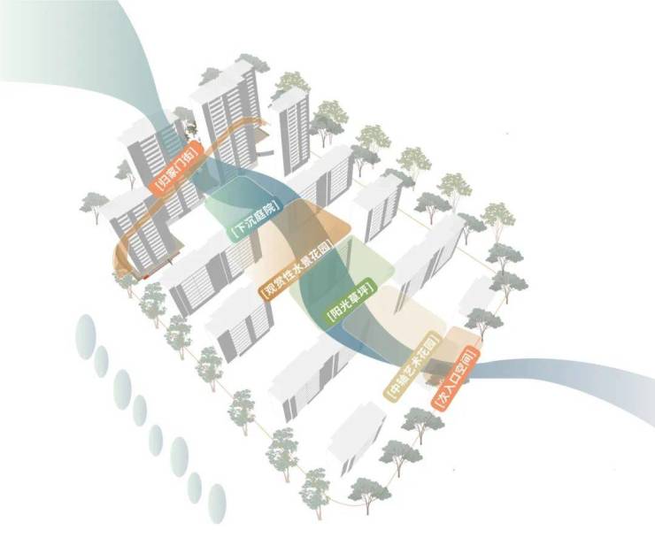 在园内,馥香园以洋房资源最大化为设计导则,以南低北高的建筑排布,北向远瞰城市繁华,南面尽情拥抱阳光与绿意,北向高层建筑,形成“居有靠山”的吉祥寓意。