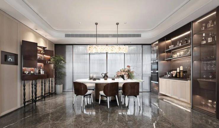 面向宁波高净值人士需求,馥香园打造约1550㎡的栖心CLUB,引入包括私宴厅、健身房、棋牌室等功能,与下沉立体山水庭院互动,沉浸享受海派摩登生活风尚。