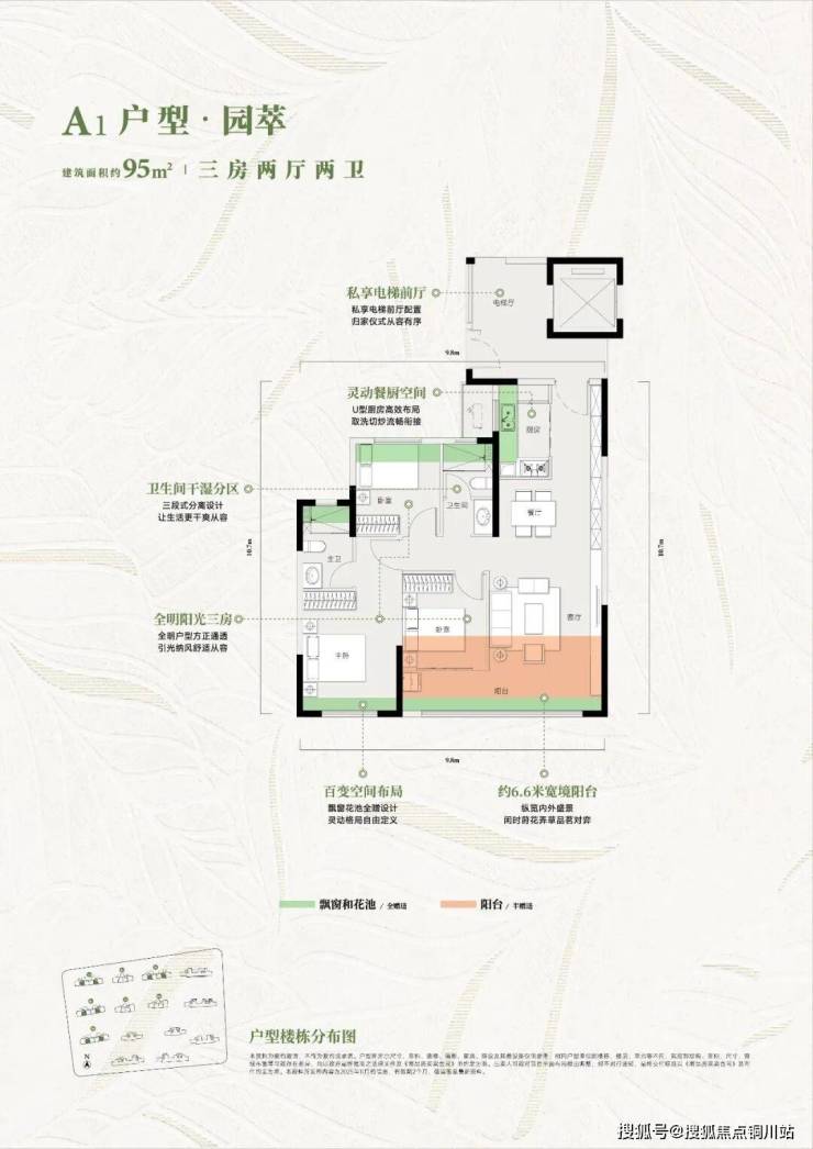 建面约95㎡户型,以刚需面积实现约120㎡改善的功能性。