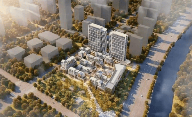 配套设施:小区规划有建面约 13 万方的商业,两条归家主轴,东西向生活轴规划有社区商业、邻里中心、服务中心、幼儿园等配套;南北向礼仪轴方向可一览东方院落递进式礼序布局。