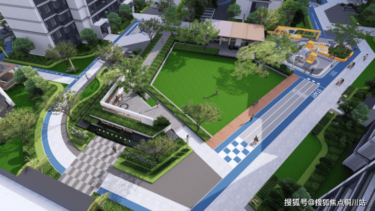 项目秉持“全龄互动·和谐共生”理念,匠心打造覆盖老年颐养、成人健身、家长看护及儿童游乐的复合型活动空间。约1.6公里宝石蓝健康跑道串联全龄功能区,莫兰迪灰与玛格丽特黄的现代美学,结合自然种植设计,构成层次丰富的沉浸式景观。