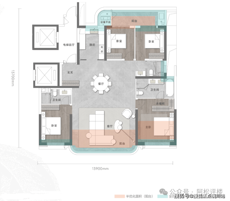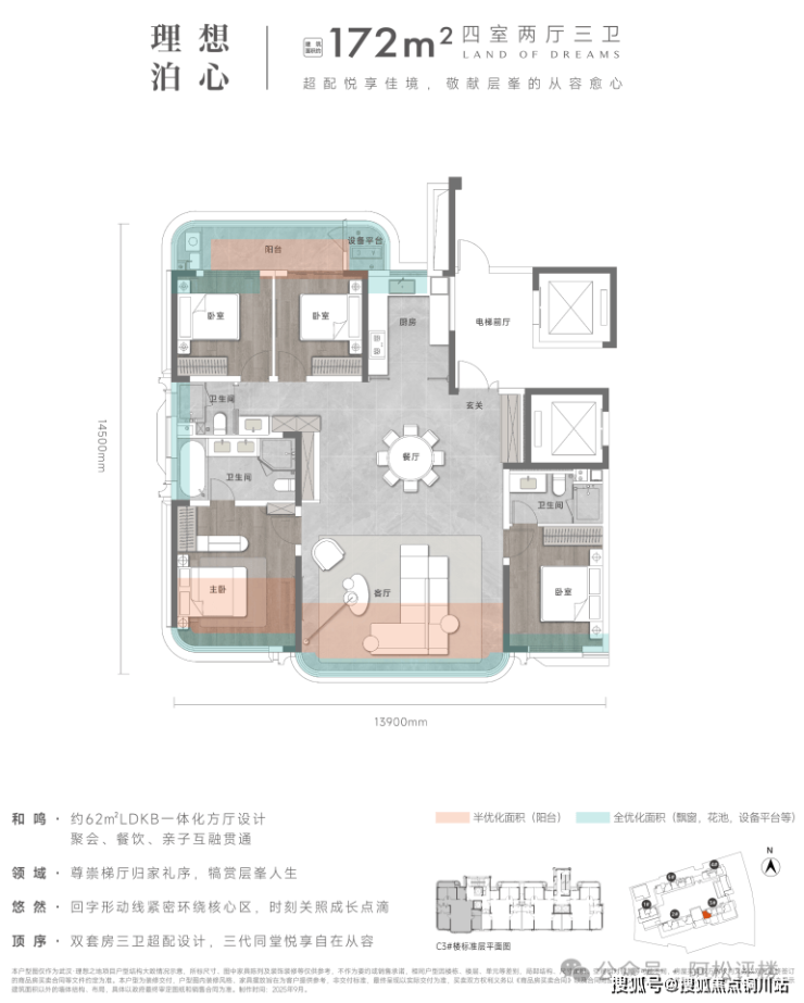约13.9米巨幕开间!约62平极致方厅!南向双主卧!