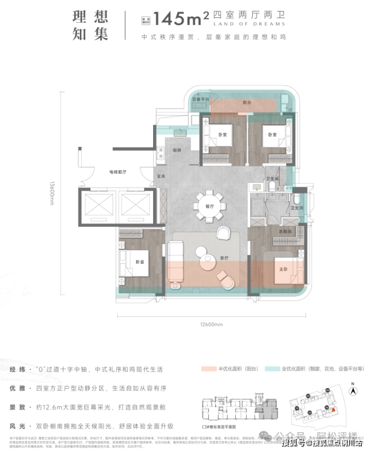 武汉·理想之地包含了三个地块,其中将C地块作为首发。从公开信息来看,C地块设计了建面约130平-225平房源。