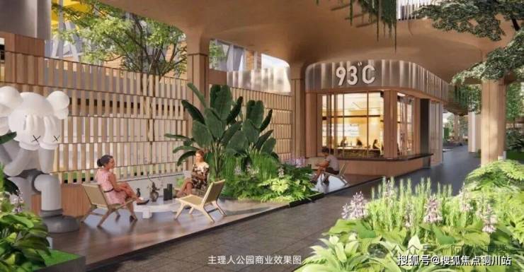 比如,沿着整个项目的十字中轴线,布局了非标商业街区和市集。与传统的社区商业不同,该项目商业类似于住宅的底盘,不仅抬高了住宅的视野和采光,还能真正实现配套就在正楼下的生活方式。