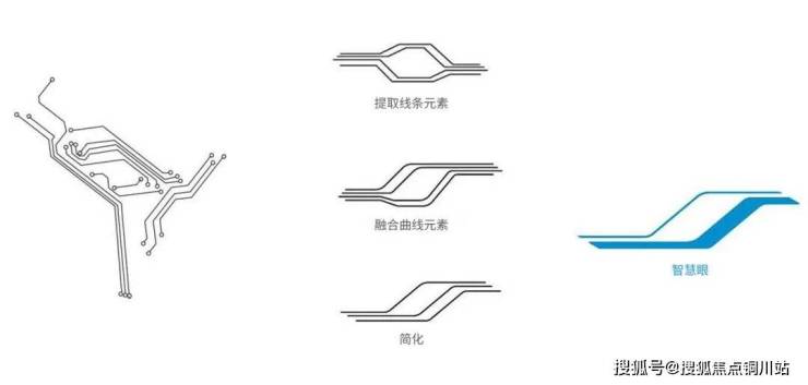 从精密电路板的几何折线中提炼设计元素,与绍兴水墨山水的柔美弧线、高铁的流线型美学三重交融,以曲线设计语言实现“以简驭繁”的意境转译。最终凝练的“智慧眼”符号,通过美的品牌标志性的天蓝色赋能,成为贯穿建筑、景观、室内的超级视觉IP。