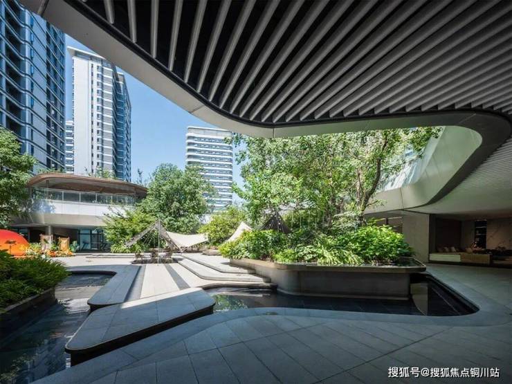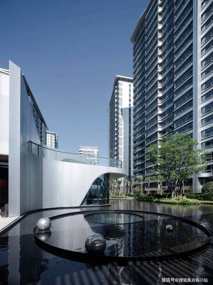 银白色铝板立面在灵动总图规划的映衬下熠熠生辉,流畅的线条与光影交织,营造出极具未来感的建筑美学。步入小区内部,纯净的金属质感与空间韵律相得益彰,仿佛置身科幻场景,每一处转角都暗藏惊喜。
