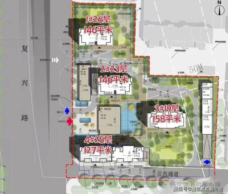地铁出行距离复兴路站(4、5号线换乘站)约200米,步行至11号线紫阳湖站约500米