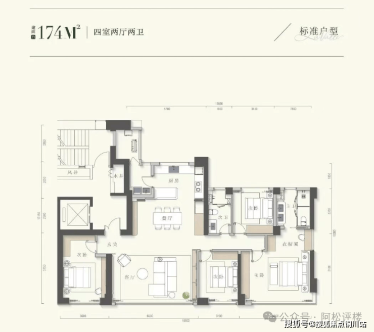 该户型南向约18.6米面宽,南向房间实现了“阳光平权”,主卧还是“L”型落地窗,采光、景观视野进一步升级;超大客餐厅动区空间+超34平的主卧套房+近20个平的次卧,奢阔感十足。