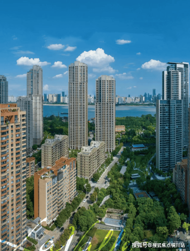 它的东南向即是延绵到汉口江滩的城市绿廊,西边即高低错落的社区中央园林,北向即市政公园(部分在建),毫不夸张的说,T1号楼东、西、北几乎被绿色环抱,在城市核心享真正的低密、松弛生活。