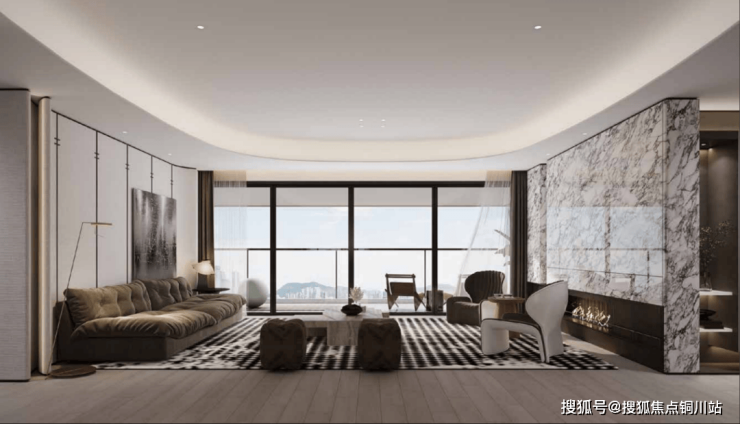 在室内精装上,澜庭·雅致采用木饰面、金属线条、岩板等材料,并采用如圆弧形吊顶等精心设计,相较成本、工时,更多考虑装修效果与品质,追求完美。