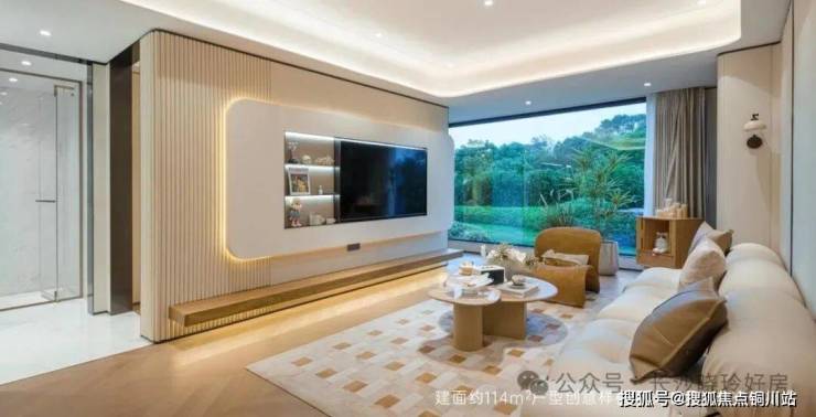·建面约114㎡2+1房,三开间朝南,充分考虑家庭成长与均好需求,主次卧开间皆超3米,客餐厅等面宽,营造约30㎡餐客一体空间,各功能区尺度均衡,南向景观阳台开间约6.8米(含设备平台),实现小户型大空间