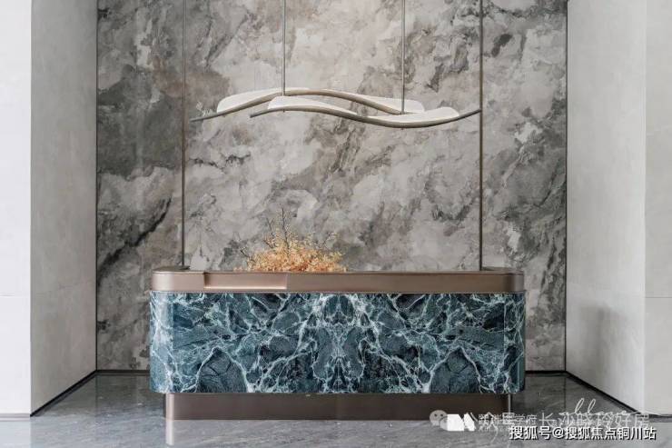 1.出入归家礼待:东入口社区大堂面积约120㎡,层高约5.5米(装修后约4.7米),墙面为瓷砖通铺,地面为石材微缝拼接,右侧通过大面岩板+天然云石壁灯渲染酒店式归家氛围;楼栋入户大堂采取电动对开门设计,层高约3.6米(装修后约3.1米),悬浮吊顶,墙面及地面通铺“简一(900*1800)”瓷砖,充分运用光影变化、艺术点缀、高贵建材等手法强化了精致的空间美学,匠著更契合业主的学府生活方式