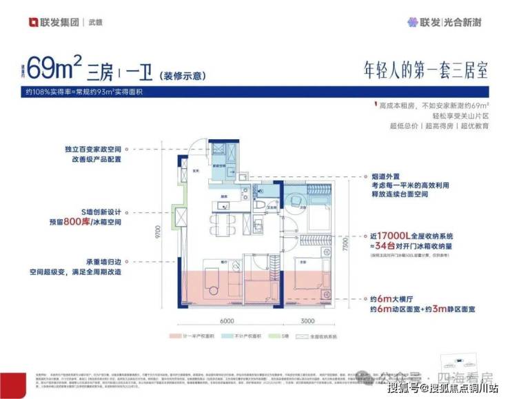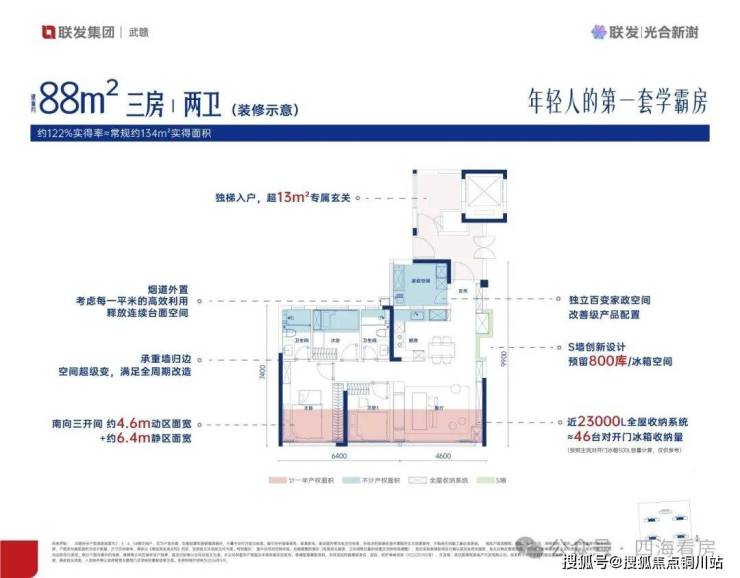一室百变,让空间随家庭而成长。通过承重墙归边、烟道外置、S墙收纳空间、入户花园4大创新设计,实现户型灵活改造,匹配独居到三代同堂全周期,省去高额置换成本。