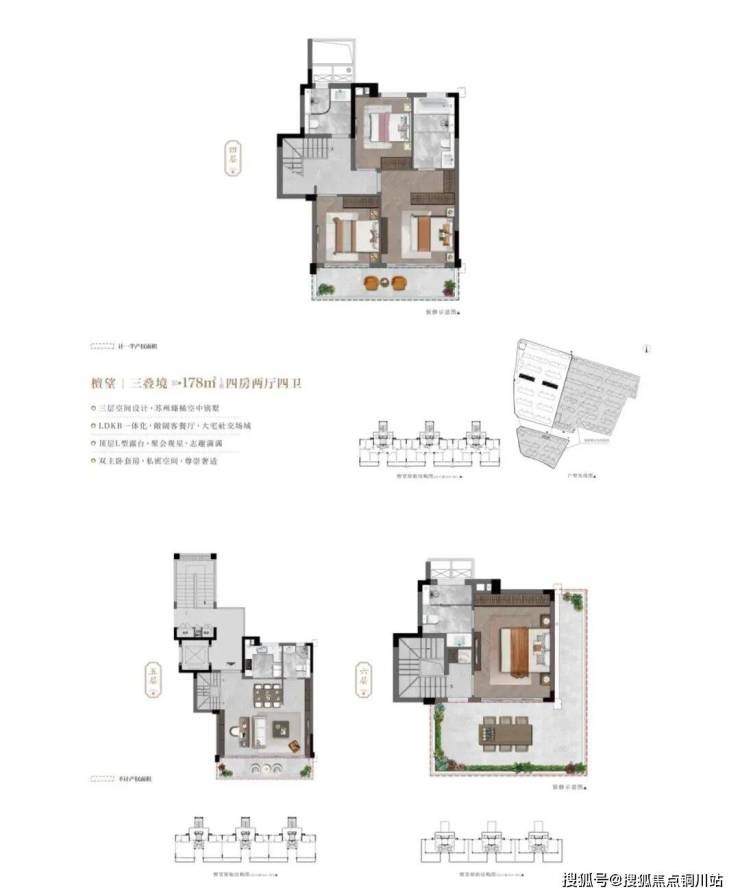 更创新的是上叠3层的设计,客餐厅厨在中间,电梯直接停靠,卧室在上下,互不打扰。