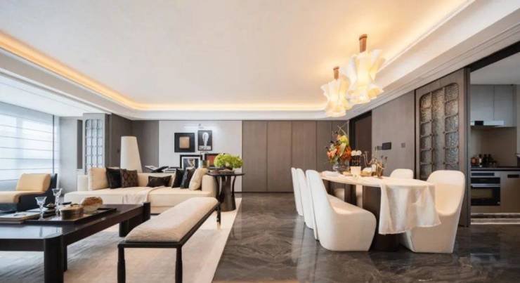 约5.95米大尺度横厅,媲美约200㎡+大平层的尺度感,看电影、玩游戏、朋友聚会…空间绰绰有余,海派都市的格调、时尚精致的质感四处萦绕。