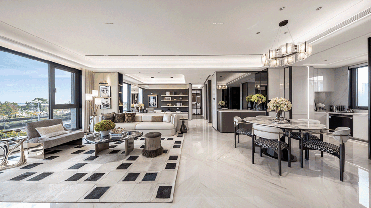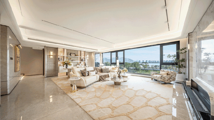 可拓展实现约70㎡双面瞰江方厅,配置南北双向落地窗,无论是家庭欢聚还是宾客接待,皆有诗意江景相伴,精准匹配高端改善家庭需求。