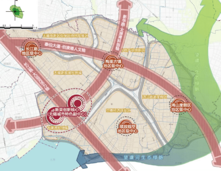 从战略高度上而言,伯渎河是《新吴区分区战略(产城融合)发展规划》中确定的三条骨架廊道之一。