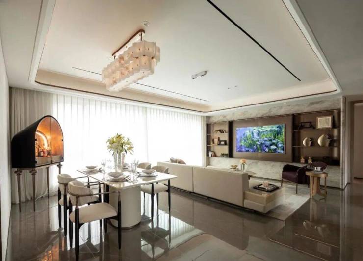 看完了惊艳的实景示范区,再看项目的样板间,同样设计感、科技感十足。首先看定位,非常纯粹的改善面积产品,143㎡户型样板间展示出了多重生活场景,更是用精装配置进一步凸显品质。